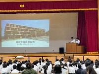 本日、各学年とも2時間ずつ最後の調整とリハーサルを行いました。体育館では「総合的な学習の時間」で学んだことを発表しますが、実際にプレゼンテーション画面を壁に投影して調整したり、説明の流れを確認したりしていました。