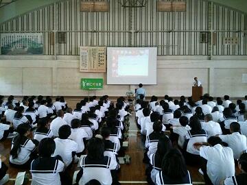 本日,講師に旭建設 黒木繁人 社長をお迎えし,本校体育館で夢をはぐくむ講演会を行いました。講演では,社会がどのような人材を必要としているか。あきらめないこと,耐えること,目標を持つこと,生きていることを大切にすること,法律に触れないことなど例をあげて説明されました。