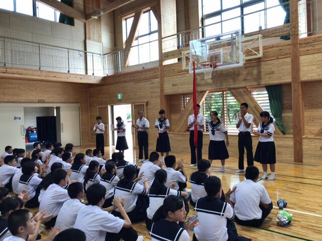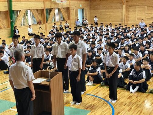 その後の集会では,夏季休業中の部活動の入賞者などを表彰しました。