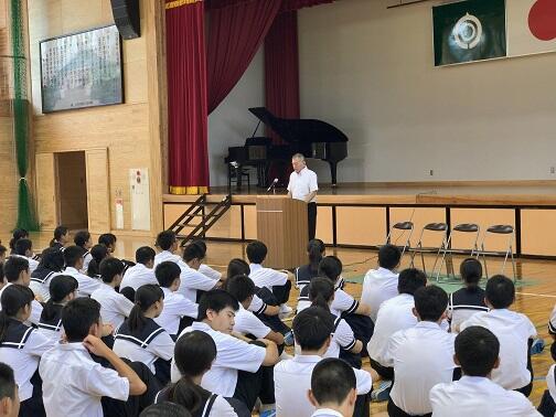 その後,全校集会で命の大切さや夏休み中の生活,学習,健康面の指導を行いました。