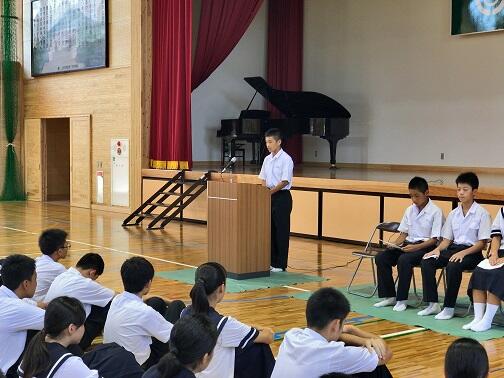 代表の生徒が1学期の反省と夏休みに向けての決意を述べました。