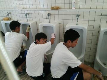 また,旭建設の社員教育に一環として行っている。「トイレ清掃に学ぶ」についても話があり,実際に三年生が体験しました。