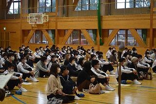3年生にとっては、切実な内容なので、説明をひとつひとつ確認しながら、真剣に聞いていました。入試まであっという間です。毎日の時間を大切にして、がんばってほしいですね。