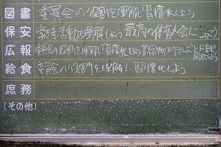 校門近くにある掲示板には、昨日の生徒総会で決まった「生徒会スローガン」や生徒会専門委員会の4・5月目標も書いてあります。今日の午後は、全校専門委員会も行いました。