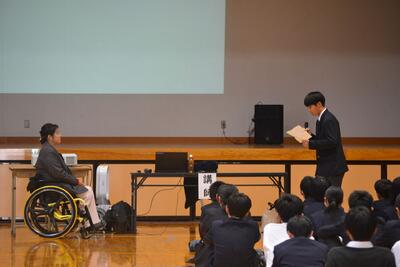 今日の5・6時間目に真北聖子さんのお話を聞きました。車椅子での生活を通して、嬉しかったことや苦しかったことを、実体験を交えて語ってくださいました。