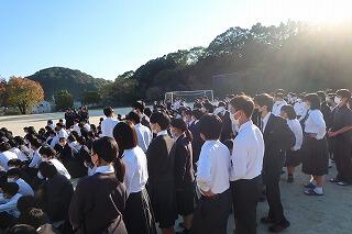 これから寒くなり、火災が発生する可能性が高くなります。修学旅行や買い物などで慣れない場所に行き、夜間に火災に遭遇するかもしれません。そのときには今日の訓練を活かし、慌てずに避難して、命を守る行動をして欲しいと思います。また、火災を起こさないためには、火の用心が大切です。