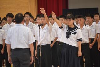 どの部活動(競技)も、日向中学校や日向市の代表としての誇りをもって堂々と競技・演奏することを誓いました。