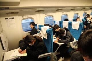 疲れているように見えた子どもたちでしたが、新幹線内はとっても元気です。