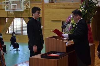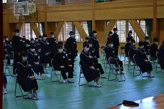実施となりましたが、保護者、教職員の出席のもと、98名の卒業生の晴れ
