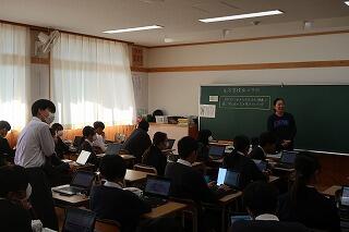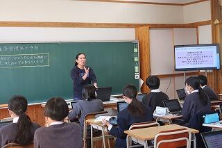 日向中では、よりよい授業への改善を目的として、先月から「相互参観授業」を行っています。今週は2年生の教室で「保健体育」の授業を参観しました。授業は「生活習慣病の予防」で、生活習慣病について症状や原因などを勉強した後、自分がこれからの生活を健康に過ごすための5箇条を考え、それをグループで発表して他の生徒から意見をもらい修正するものでした。