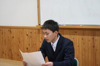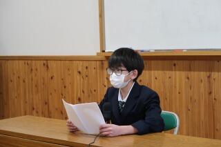 式では、はじめに各学年と生徒会の代表生徒が「2学期の振り返り」を発表しました。その中には今年度 日向中の目標に掲げている「自律」「主体的」の視点からの反省もありました。