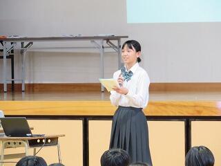 まずは体育大会のスローガン発表です。今年のスローガンは「燃えよ!日向魂2024 ~全力・協力・友情~」です。
