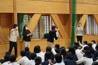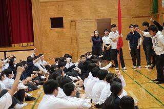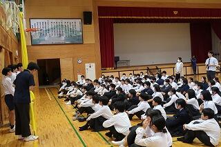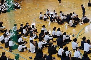 日向中学校では、5月19日(日)に体育大会を開催します。今日は保体委員会が中心となって結団式を行いました。