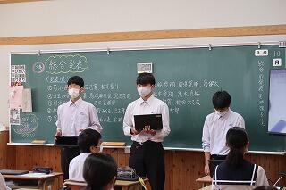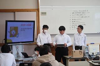 3年生は総合的な学習の時間に「持続可能な社会実現のためにできること」を探究しています。今日はこれまでの取組や提言をグループごとに発表しました。
