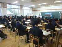 校長先生からも「特に緑風祭を頑張っていましたね。3年生に続いて、1、2年生も頑張っていきましょう。」といった言葉を頂きました。また、代表生徒からは、「3学期は次の学年の0学期なので、頑張りたいです。」「受験に向けて勉強を頑張っていきます。」といった、前向きなことを話してくれました。