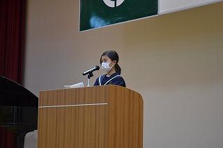 本日、2学期の終業の日となりました。今学期も新型コロナの影響で、行事の削減や縮小がありましたが、生徒のみなさんは、元気いっぱいに学校生活を送ることができたと思います。終業式では、生徒の代表が、それぞれ学期を振り返り、しっかりとした内容の反省を発表しました。