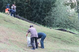 10月19日(土)、PTA美化活動を行いました。この美化活動は、例年、日向中の創立記念日(10月15日(火))に合わせて行っています。今回は、校舎からグラウウンドへ降りる斜面の草集めが主な活動でした。事前に技術員さんが刈っていたので作業も効率よく進み、予定よりも早く終わることができました。