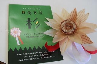 家庭科の授業では杉板を薄く削った材料を使って「杉コサージュ」をつくっていました。授業の終わりには、今日が最後の家庭科の授業だったので、担当の先生へお礼の寄せ書きを贈っていました。