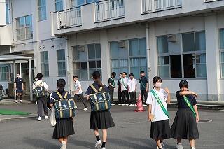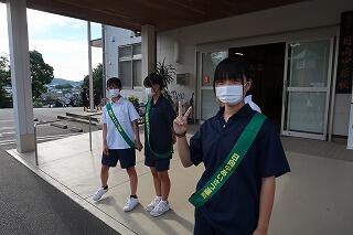 海の日と合わせた3連休が終わり、1学期最後の週が始まりました。今朝も生徒会活動としての「あいさつ運動」を行っています。担当は2年3組です。先週末から昨日まではぐずついた天気が続いていましたが、今朝は久しぶりに青空の下での登校です。週末、県中総体の屋外競技は延期となったので、晴れているのはありがたいことですが、この後は日差しが強くなり、暑くなりそうです。