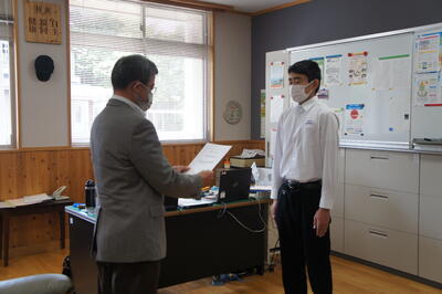 また今年度、日向中学校は日向警察署から「自転車盗難防止モデル校」の指定を受けました。 先日指定書をいただきました。現在、保健安全委員会を中心に、正しい施錠率100%を目指して活動しているところです。