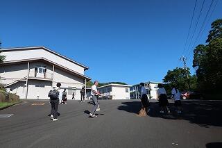 今日も朝からよく晴れています。昨日よりも半袖ポロシャツを着ている生徒が多くなりました(日向中は制服更衣期間はなく、各自の体調やその日の気温に応じて自分で制服を選びます。また、制服としているポロシャツも「白」または「紺色」です。上着であるジャケットやネクタイ・リボンを着けても構いません)。