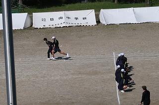 【保健体育】運動場で学級対抗リレーの練習をしていました。走順やバトンバスの工夫で勝負が決まります。