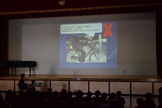 4月始めから実施した安全集会や自転車の交通ルールについての学習の後、全校生徒が自転車免許テストを受けます。