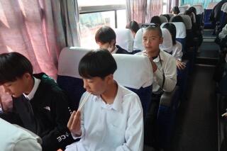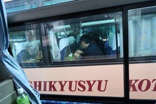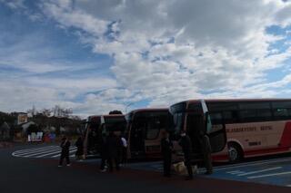 11時20分ごろ、バスは宮島サービスエリアに到着しました。バスの中でお弁当を食べます、11時50分、広島平和記念公園に向けてバスは出発しました。
