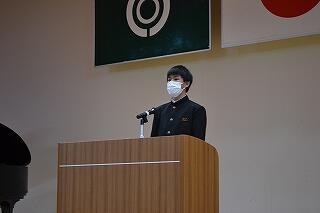 さて、掲載が遅れましたが、12月24日(金)の2学期終業式の様子をお届けします。終業式では、各学年の代表と生徒会の代表の計4名が学期反省を発表しました。