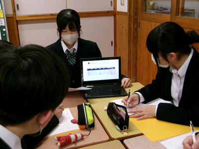 先日2月27日(金)、1年生は総合的な学習の時間に「先輩方の声を聴く会」を行いました。私立高校や県立高校推薦入試の合格内定をつかんだ3年生が講師となって、進路選択や受験にまつわるお話をしてくれました。1年生にとって憧れの存在である3年生の言葉には説得力があり、特に「1年生からの積み重ねが大事」という言葉にはうなずいている生徒が多数でした。これまでぼんやりとしたイメージでしかなかった「進路選択」や「高校受験」が、より身近な自分のこととして考えられた1時間となりました。