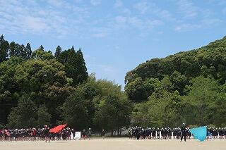 今日は4時間目に全体練習を行い、予行練習後の確認事項の連絡と、閉会式の練習、役員の活動内容の確認、そして最後は団ごとに応援練習を行いました。