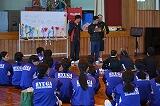 全校生徒で作ったプレゼントを届け、体育館で風船バレーや人間オセロなどのゲームをして楽しい時間を過ごしました。