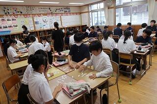 10月23日(水)、今年度3回目の日向中校区小中合同研修会を行いました。今回は富高小、塩見小の先生方に日向中の授業を見ていただき、その後、授業研究会を行いました。また、後半は各研究班に分かれて小中一貫教育について、今後の活動について協議しました。