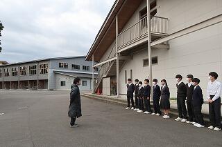 サッカー部は雨の日やテストの日以外は毎朝「あいさつ運動」を行っています。ありがとうございます。