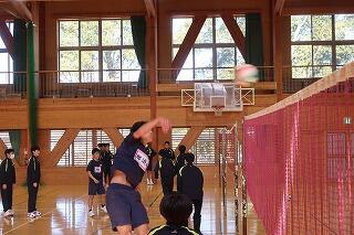 写真は3年生の5時間目の授業のようすです。体育館では体育でバレーボールの授業が行われていました。日向中にはバレーボール部はありませんが、上手にトスやアタックが上手な生徒も多くいました。