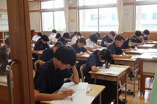 夏休み中の勉強の成果を確認するために今日(9月3日(火))と明日(9月4日(水))の2日間で、2・3年生は実力テスト、1年生は課題テストを実施します。特に3年生は多くの学校が一緒に受けるテストで、進学を希望する高校・学科ごとの順位も出てきます。