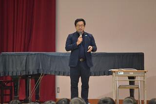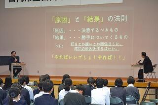 実は今回の講師である押川様の中学3年生の時の担任が本校の校長であることから、対談形式の講演になりました。