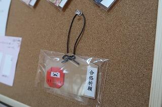 日向中の「学校図書館」は本の配架や掲示物などが工夫してあり、季節や行事を考慮して定期的に変わります。現在は「新春企画」として、3年生の高校入試が近づいて来ているので、「受験」や「合格」を意識した工夫がしてあります。今月は「図書室で本を借りると、お守りと絵馬が一人一つずつもらえる」そうです。