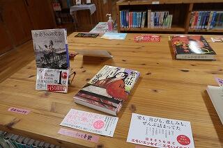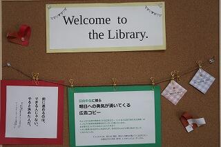 日向中の図書館は本の配架や掲示物が定期的に変わります。また図書委員会がイベントを行います。図書館は後者の2階です。来校された際にはご覧ください。
