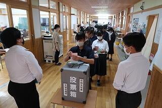 選挙管理委員を務めた3年生は、選挙の公示前から今日まで責任感をもち、献身的に活動してくれました。ありがとうございました。