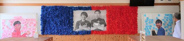 生徒玄関に設置してある広報委員会が準備した掲示物には、体育大会の目標や意気込みを書いた多くの付箋が貼ってあります。