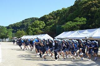 今日は開会式の練習と、エール交換を行い、その後は役員ごとに集まり、明日の予行練習に向けた準備を行いました。役員以外の生徒は団活動を行い、応援練習も盛り上がりました。