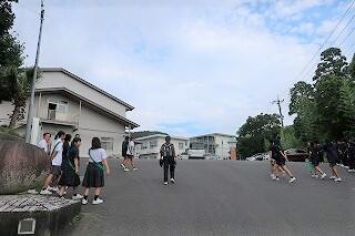 今朝の「あいさつ運動」は3年3組でした。生徒の声に負けないほど「元気で明るい学級担任の先生の大きなあいさつの声」も響いていました。