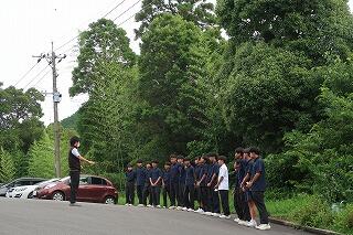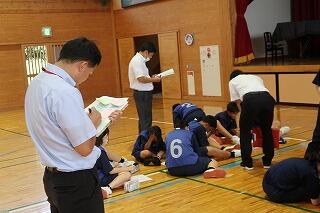 昨日(7月9日(火))の日向市の最高気温は38.5℃、全国1位の暑さでした。その時間、日向中の体育館では地区中体連の研究授業が行われていました。授業は1年生の体育の授業(バドミントン)です。