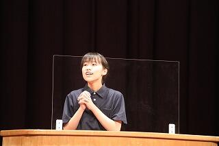 明日(9月21日(木))「日向・東臼杵地区英語暗唱・弁論大会」が開催されます。会場は日向市中央公民館ホールです。日向中からは5名の生徒が出場します。今日の昼休みには、出場する生徒が校長室にあいさつに来ました。その後は、英語科の先生やALTの前で最後の練習を行いました。