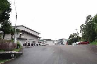 3連休が終わり、火曜日から始まった今週の授業も今日と明日が終われば週末の休みです。サッカー部の生徒が顧問の先生と一緒に「あいさつ運動」を行っています。その前を希望の坂道を上ってきた生徒が通ります。気持ちよく1日がスタートします。ありがとうございます。