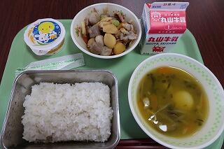 今夜が「中秋の名月」ということでなのか、今日の給食の献立は、「お月見だんご汁」と「栗入りの煮物」、デザートは「お月見ゼリー」でした。