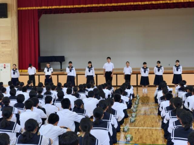 生徒集会のあと、あいさつ集会を行いました。今日の確認をもとに、これからより良いあいさつができるようにしていきます。