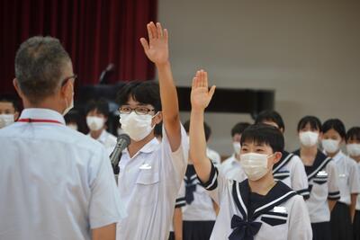 12日(火)に、これらに出場する生徒の皆さんの推戴式を行いました。