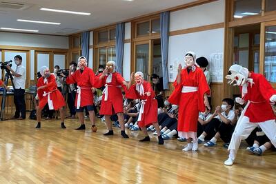 1年生は、橘ひょっとこ踊り保存会の皆さんにご協力いただき、総合的な学習の時間でひょっとこ踊りを学んできました。その成果を8月6日(土)のひょっとこ夏祭りで披露する予定でした。